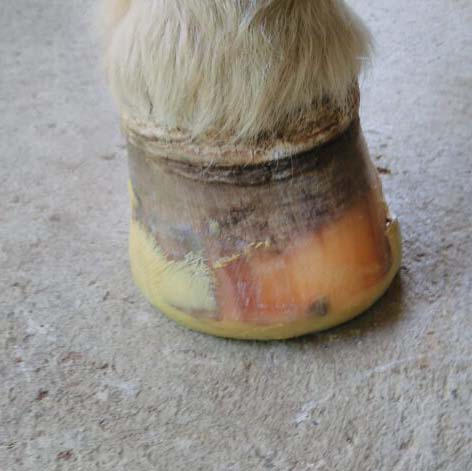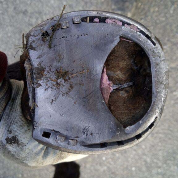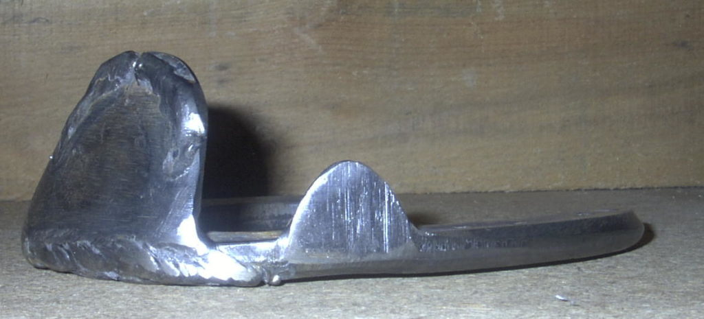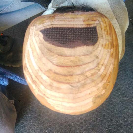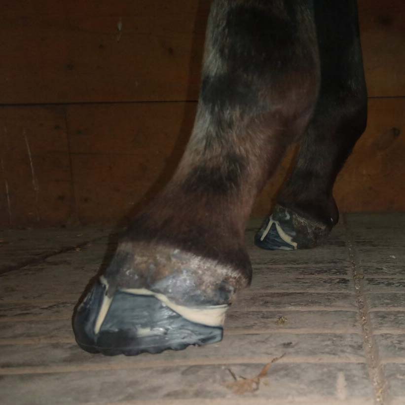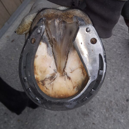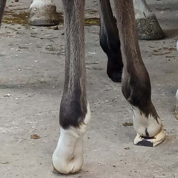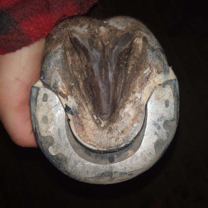 Zehenkappe am Pferd das schleift Dieses Hufeisen mit extrem grosser Zehenklappe wurde für Pferde mit akutem Spat verwendet.