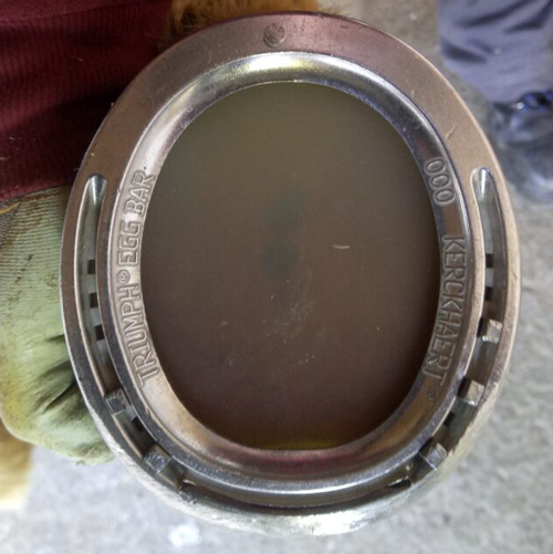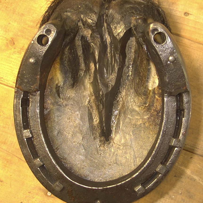 Das Hart-Bar Hufeisen ist ein Spezialhufeisen. Effekt: Vermehrte Stützfläche für den Huf, vermehrte Auflagefläche des Hufeisens am Boden, Verhinderung von übermässigem Durchtreten. Einsatz bei Bänder- und Sehnenproblemen. Wir führen die Hart-Bar-Shoe’s in allen Grössen in unserer mobilen Schmiede mit.