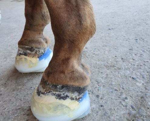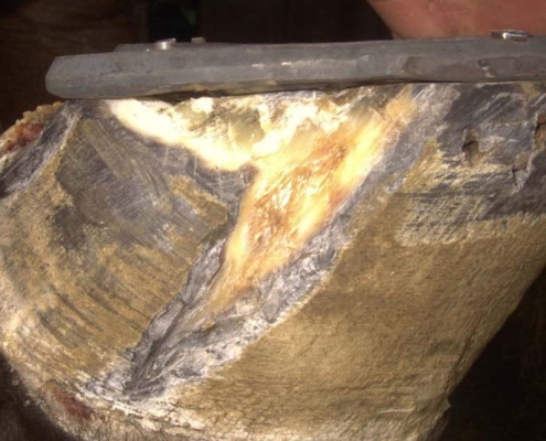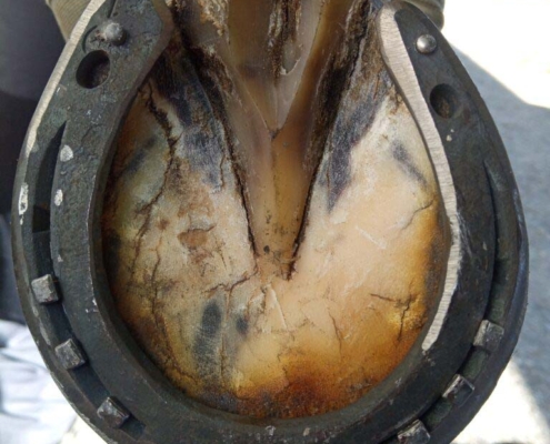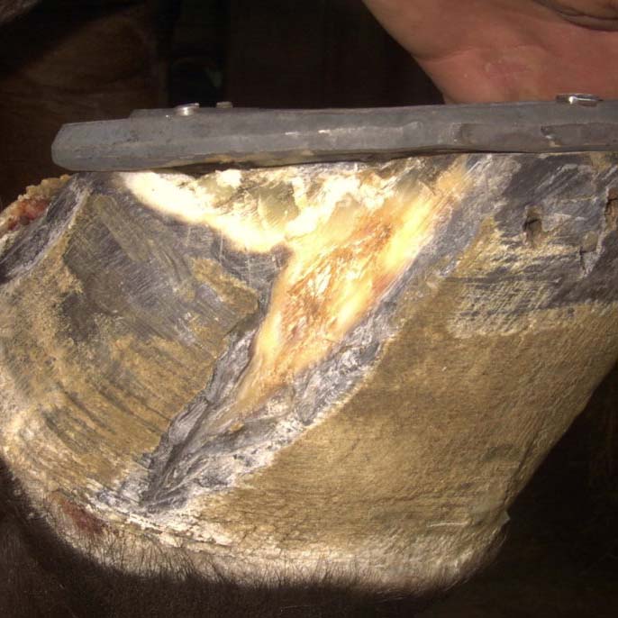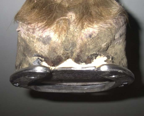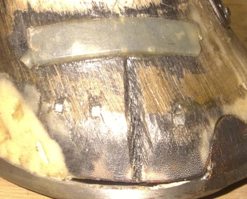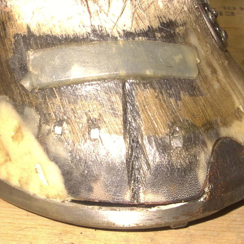 Hornspalten entstehen vielfach durch Verletzungen oder durch Überbelastung. Man unterscheidet Tragrand-, Kronenrand-und durchgehende -Hornspalte. Leichte Spalten kleben wir mit Kunststoff Plättchen (Patch). Bei starken Spalten schrauben wir ein Metallplättchen auf den Huf. In unserer mobilen Schmiede führen wir beide Sorten Plättchen für die Hornspalt Behandlung mit.