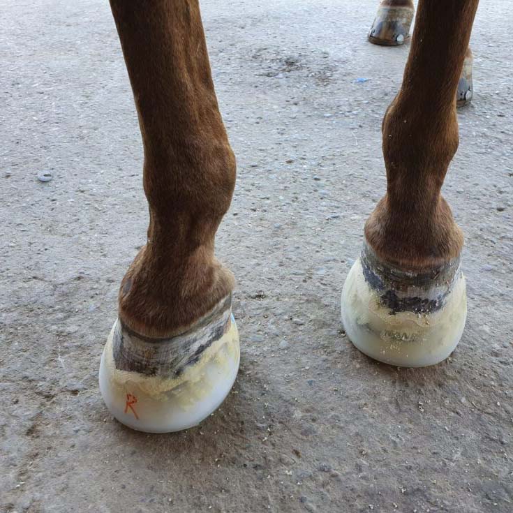 In diesem Fall belastet das Pferde vermehrt die innere oder die äussere Hufwand. Durch diese Überbelastung ist eine verstärkte Abnützung auf der einen Seite des Hufeisens erkennbar. (Hinterhufe aber auch selten Vorderhufe können diese kippende Stellung haben.) Beim Vorführen ist zu beobachten, dass solche Pferde zuerst auf der einen Hufseite aufsetzen und mit einer Kippbewegung auf die andere Hufseite zum Aufliegen kommen. Dabei wird die Hufeisenseite, die als erstes zum Aufliegen, kommt mehr abgenutzt, dieselbe Hufwand wird dabei unter den Huf geschoben. Dies kann bis zu groben Hufdeformationen führen.