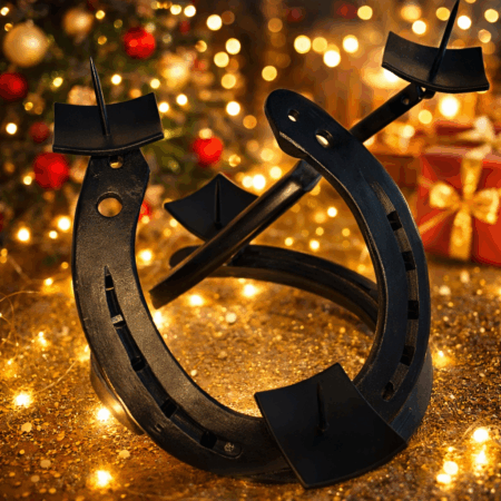 Kerzenständer aus Hufeisen Schwarz-Gold